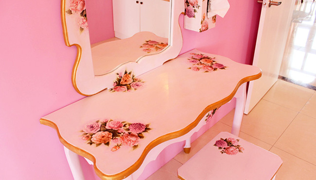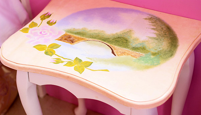 | ■手作彩繪梳妝台、梳妝椅、躺椅、床頭櫃組 |